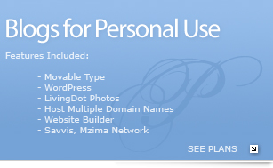 Transfer your existing blog to LivingDot today, and see what sets us apart. With a range of affordable hosting plans, powerful administrative tools, premium webmail, free Movable Type installation and a 30-day money back guarantee, we have everything you need to keep your blog running smoothly. Interested in PHP 4, MySQL or FrontPage? We have those too.